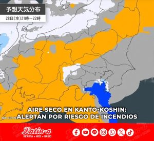 La región de Kanto-Koshin atraviesa un período de aire extremadamente seco, lo que ha llevado a las autoridades a reforzar el llamado a extremar precauciones ante el riesgo de incendios forestales, mientras se prevén lluvias y nevadas aisladas entre la tarde de este martes 28 y el miércoles 29.