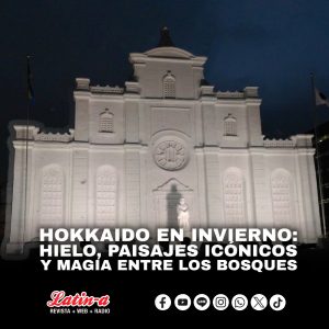 La primera fotografía corresponde al Festival del Hielo de Sapporo, uno de los eventos invernales más famosos de Japón y del mundo. Cada año, enormes esculturas de hielo y nieve se levantan en el corazón de la ciudad, recreando edificios históricos, monumentos y figuras culturales con un nivel de detalle impresionante. De noche, la iluminación realza las formas y convierte el espacio en un espectáculo visual único. Miles de visitantes recorren el festival disfrutando de la combinación entre arte efímero y el frío intenso del invierno de Hokkaido, demostrando cómo el clima extremo puede convertirse en una celebración colectiva.
