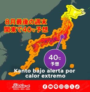 Sin embargo, el alivio será de corta duración. Según la Agencia Meteorológica de Japón, a partir del viernes 29 las temperaturas volverán a subir y se espera que el último fin de semana de agosto esté marcado por un calor extremo en la región de Kanto. En Tokio se pronostican máximas de 37 °C, mientras que en zonas interiores como Maebashi (Gunma) o ciudades de Saitama podrían alcanzarse los 40 °C, un nivel peligrosamente cercano a la temperatura corporal.